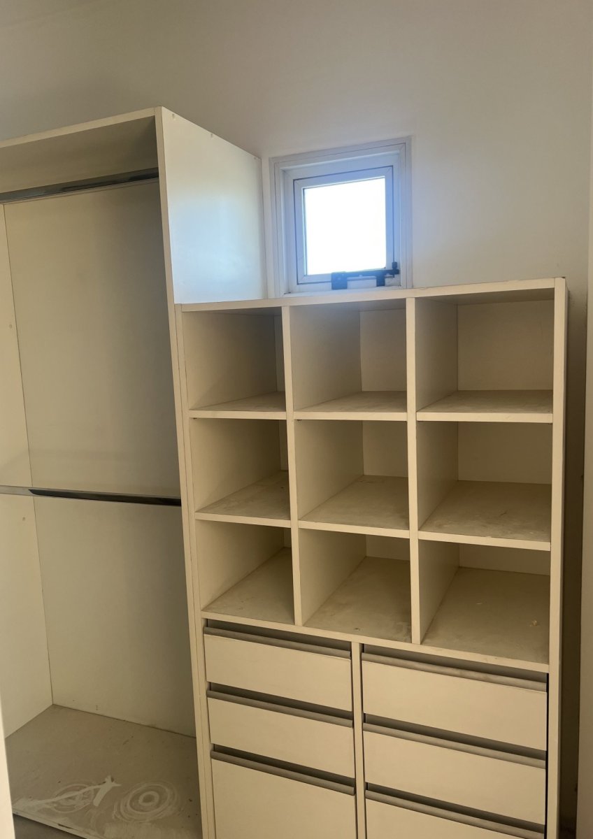 Cocina separada, equipada con alacena. bajo mesada, aparato de cocina, muebles de guardado con estantes hechos a medida.